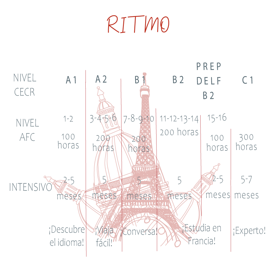 - Tenemos una oferta muy amplia en horarios de clases de francés, con diferentes modalidades disponibles: regulares, intensivos, sabatinos y clases particulares.