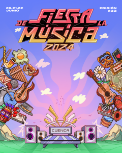 Este 2024, la Fiesta de la Música tuvo a más de 170 músicos en escena en 15 escenarios en diferentes espacios de la ciudad. Celebramos a la música durante tres días con diversas presentaciones artísticas locales, nacionales e internacionales. Por primera vez, la Fiesta de la Música estuvo presente en Turi, el emblemático mirador de Cuenca, con el objetivo de llevar la música a nuevos espacios y nuevos públicos, fuera del circuito habitual.