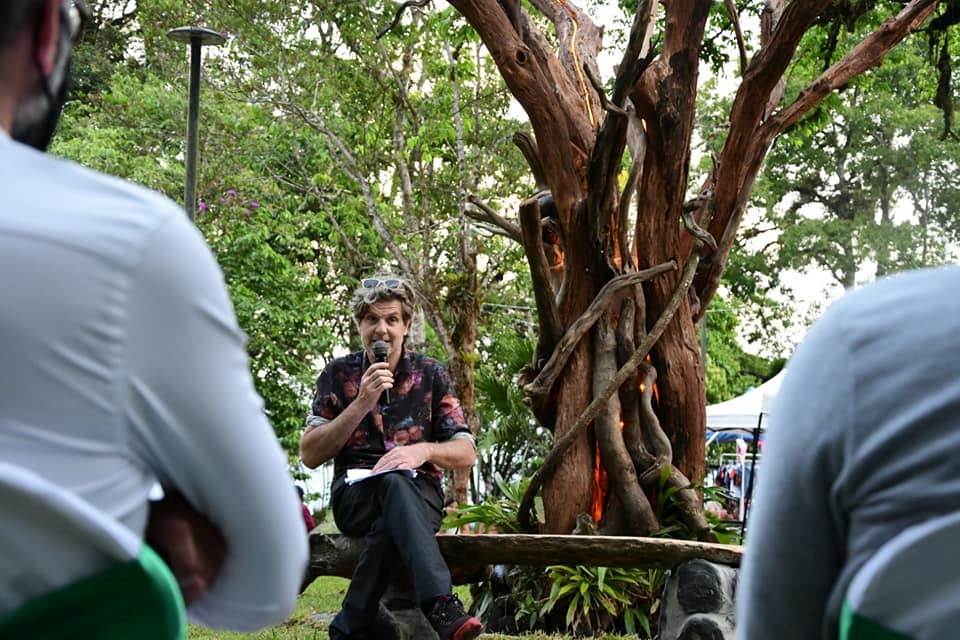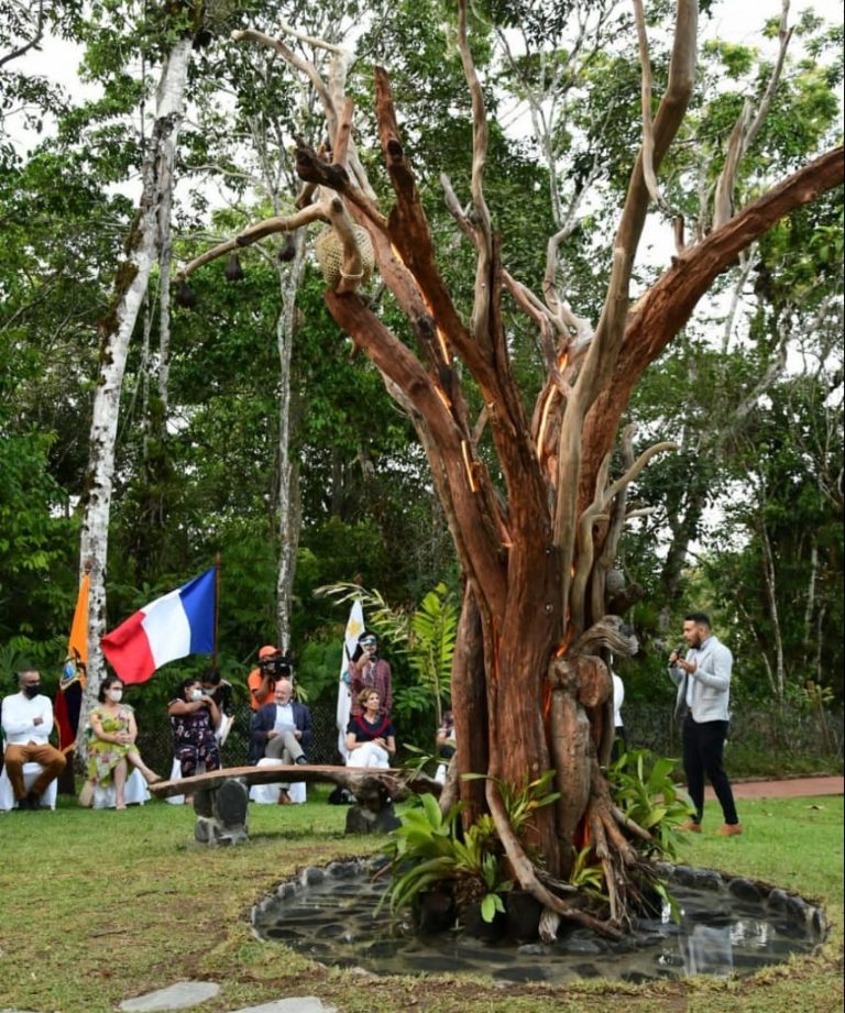 Lors de la première résidence en 2021, l’artiste plasticien retenu Eric Tassel a réalisé l’œuvre « Arbre Totem de Macas » avec la collaboration des habitants et artisans de Macas au cours des deux mois de résidence, en hommage au roi de la forêt amazonienne : l’arbre. L’œuvre sculpturale est principalement élaborée à partir de branches d’arbres qui ont été arrachées, par la force du Volcan Sangay ou par la main de l’homme, et récoltées par l’artiste le long du fleuve Upano et de la cordillère de Cutucu. Ces fragments de bois centenaires retrouvent une deuxième vie en formant l’Arbre Totem, qui rappelle aux hommes la nécessité de protéger leur environnement.